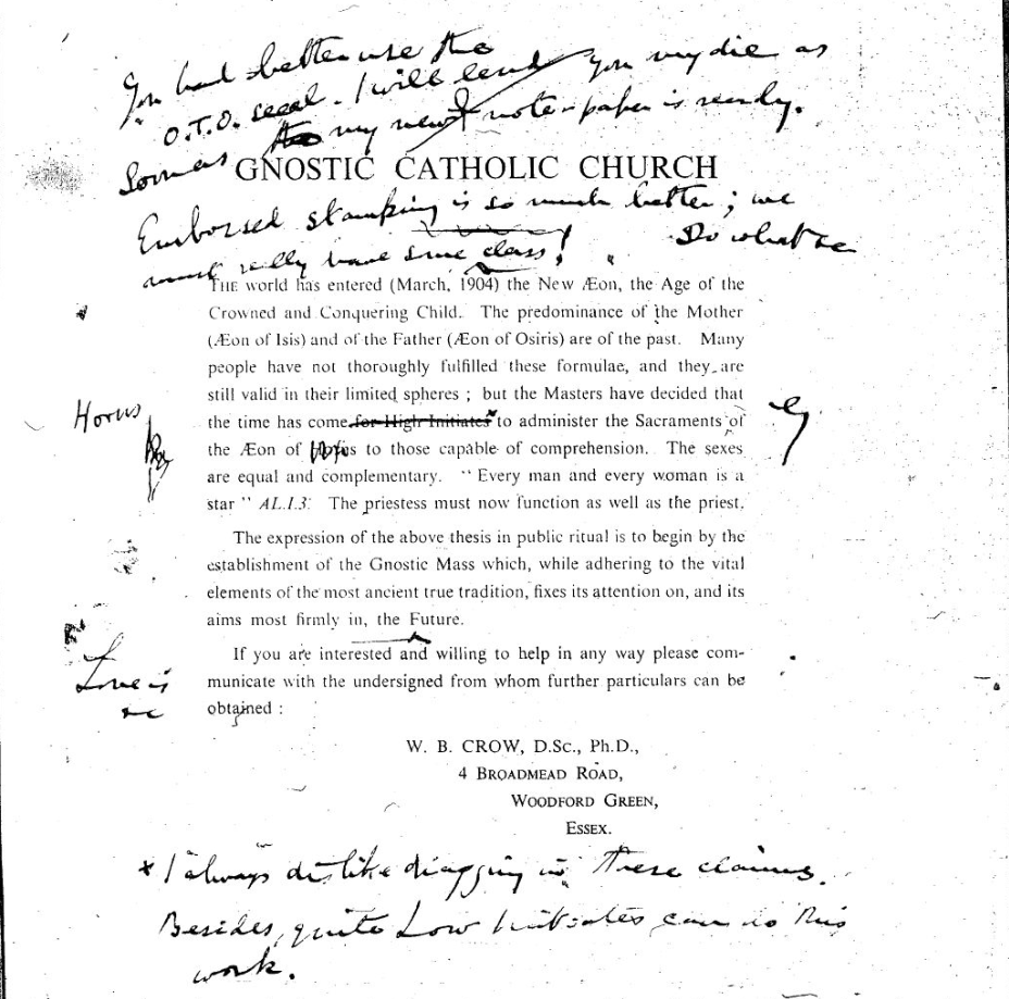 Por enquanto, basta dizer que não tenho autoridade para falar sobre o assunto da Missa Gnóstica ou sobre a relação do segredo do IX° com ela. Portanto, nada do que eu disser aqui deve ser aceito com base em meu cargo ou posição na O.T.O. Tampouco deve ser aceito com base em minhas próprias experiências pessoais na prática da magia, meditação, celebração da Missa Gnóstica ou qualquer outra coisa que me seja particular como indivíduo.