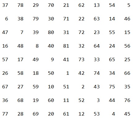 Assim, se o número 1 for omitido, e começares pela linha 2, encontrarás a soma Botzatz, 1 Samuel, cap. 14, v.4, escrito de forma defectiva. Se começares pela linha 3, terás a soma 189. Se começares pela linha 4, então 196. Pela linha 5, 203. E assim elas ascendem, excedendo-se umas às outras por 7.