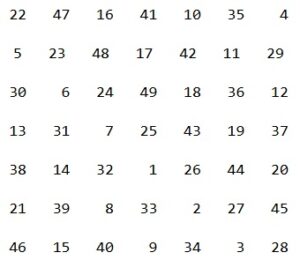 O maravilhoso Camea pertencente à classe do Bronze contém sete por sete quadrados; e a soma de cada linha, seja horizontal, vertical ou diagonal, é igual entre si, e igual a Tzephah.