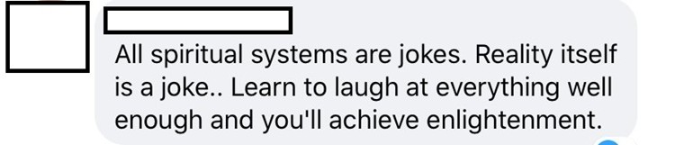 Aqui está um exemplo do enquadramento minimalista transformado em um clichê que encerra a reflexão. É uma pessoa respondendo a alguém que fez uma pergunta no subreddit de Thelema.